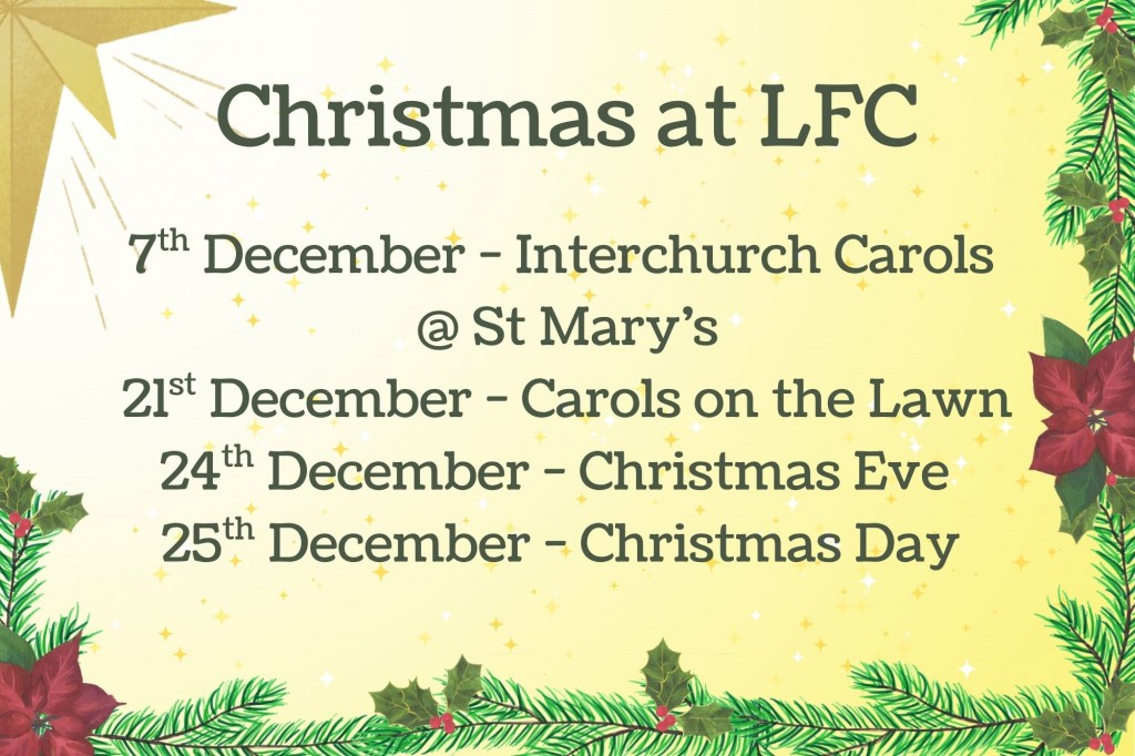 This year our Christmas celebrations will begin with the first week of advent followed closely by the Interchurch Christmas Carols hosted at St Mary's.
